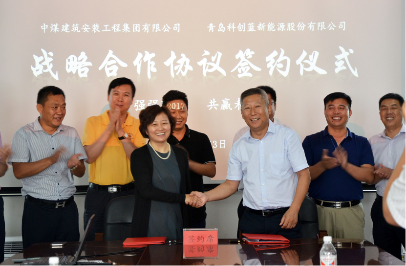 7月13日上午,青島科創(chuàng)藍(lán)新能源股份有限公司(簡(jiǎn)稱“科創(chuàng)藍(lán)”)與中煤建筑安裝工程集團(tuán)有限公司(簡(jiǎn)稱“中煤建安集團(tuán)”)戰(zhàn)略合作框架協(xié)議簽約儀式在科創(chuàng)藍(lán)舉行。根據(jù)協(xié)議,雙方將在項(xiàng)目開(kāi)發(fā)、委托加工等方面展開(kāi)全方位合作,通過(guò)建立全面、穩(wěn)固的戰(zhàn)略合作關(guān)系,實(shí)現(xiàn)強(qiáng)強(qiáng)聯(lián)合、優(yōu)勢(shì)互補(bǔ)、合作雙贏、共同發(fā)展。